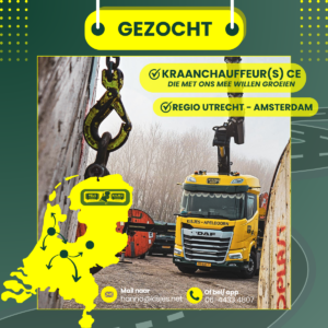 “Ben jij die ervaren kraanchauffeur die energie krijgt van dit mooie beroep? Of heb je je CE-rijbewijs en ben je klaar om door te groeien tot kraanchauffeur?”